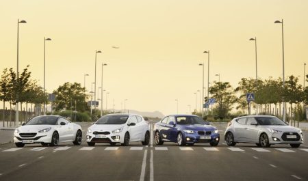 En esta prueba se enfrentan cuatro modelos de última generación con motores turbo de gasolina y tarifas asequibles o al menos no prohibitivas: de 23.000 a 33.000 euros. Son los Kia Pro_Cee’d, Peugeot RCZ, BMW 220i Coupé y Hyundai Veloster, cuatro deportivos de planteamientos diferentes. Se impone el primero, un familiar compacto tipo GTi. Y tras él se sitúa el Peugeot RCZ, un deportivo 2+2 plazas; el BMW 220i Coupé, la versión cupé del Serie 1, y el Hyundai Veloster, otro cupé, pero de tres puertas.