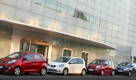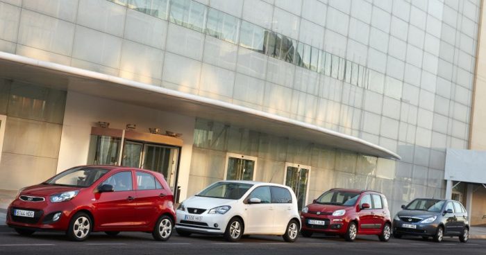Un coche pequeño con el precio más bajo posible que resuelva el transporte diario en ciudad y gaste lo mínimo. Es lo que ofrecen los cuatro modelos de esta comparativa (Seat Mii, Fiat Panda, Kia Picanto y Tata Vista), que incluyen todo lo fundamental y cuestan en torno a 10.000 euros. Se impone el Seat Mii, que, aunque es el más caro, ofrece una calidad superior.
