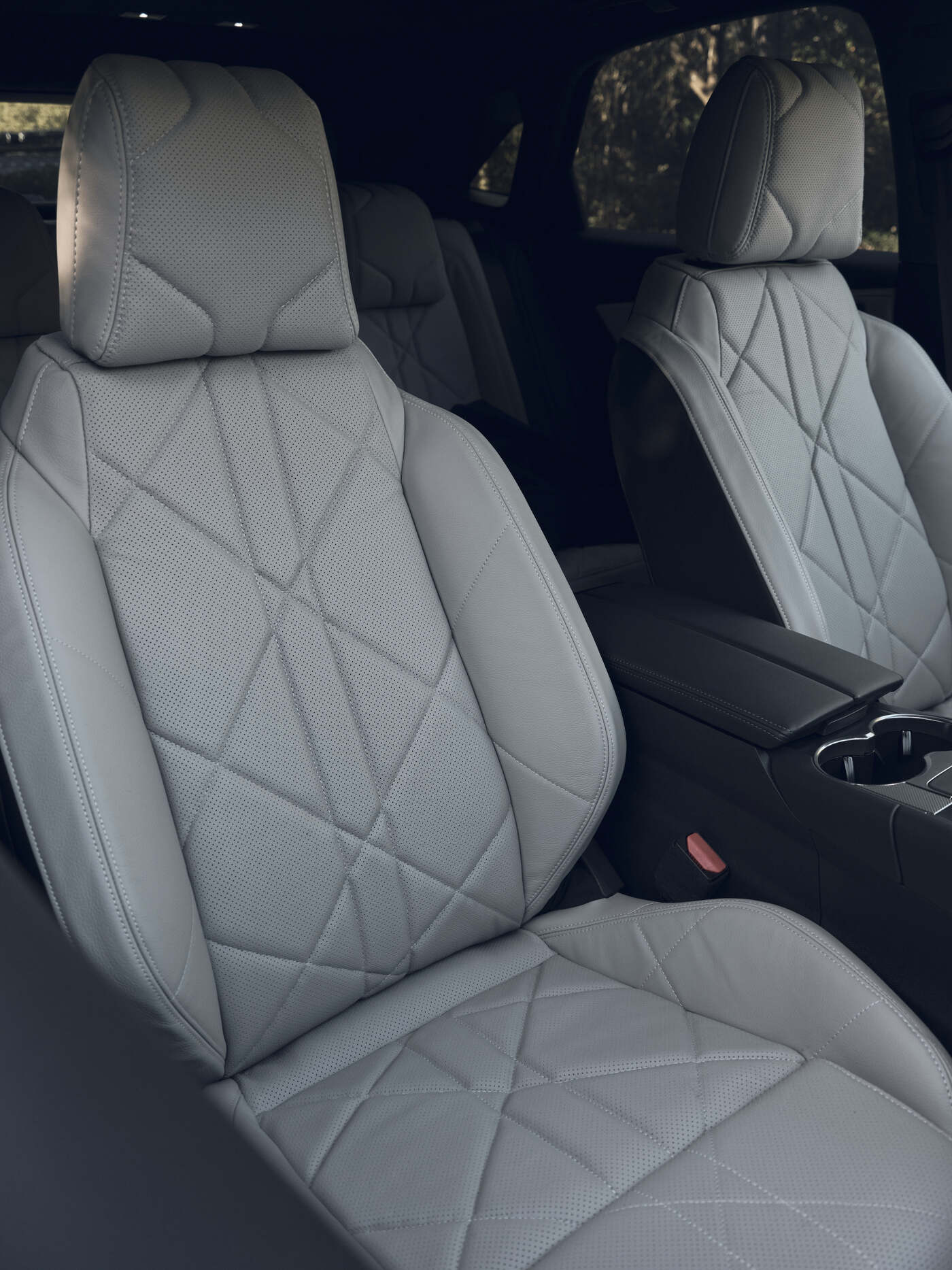 En el interior, especialmente luminoso, la personalización se centra en detalles manufacturados específicos situados en el salpicadero, umbrales de las puertas y las alfombrillas.