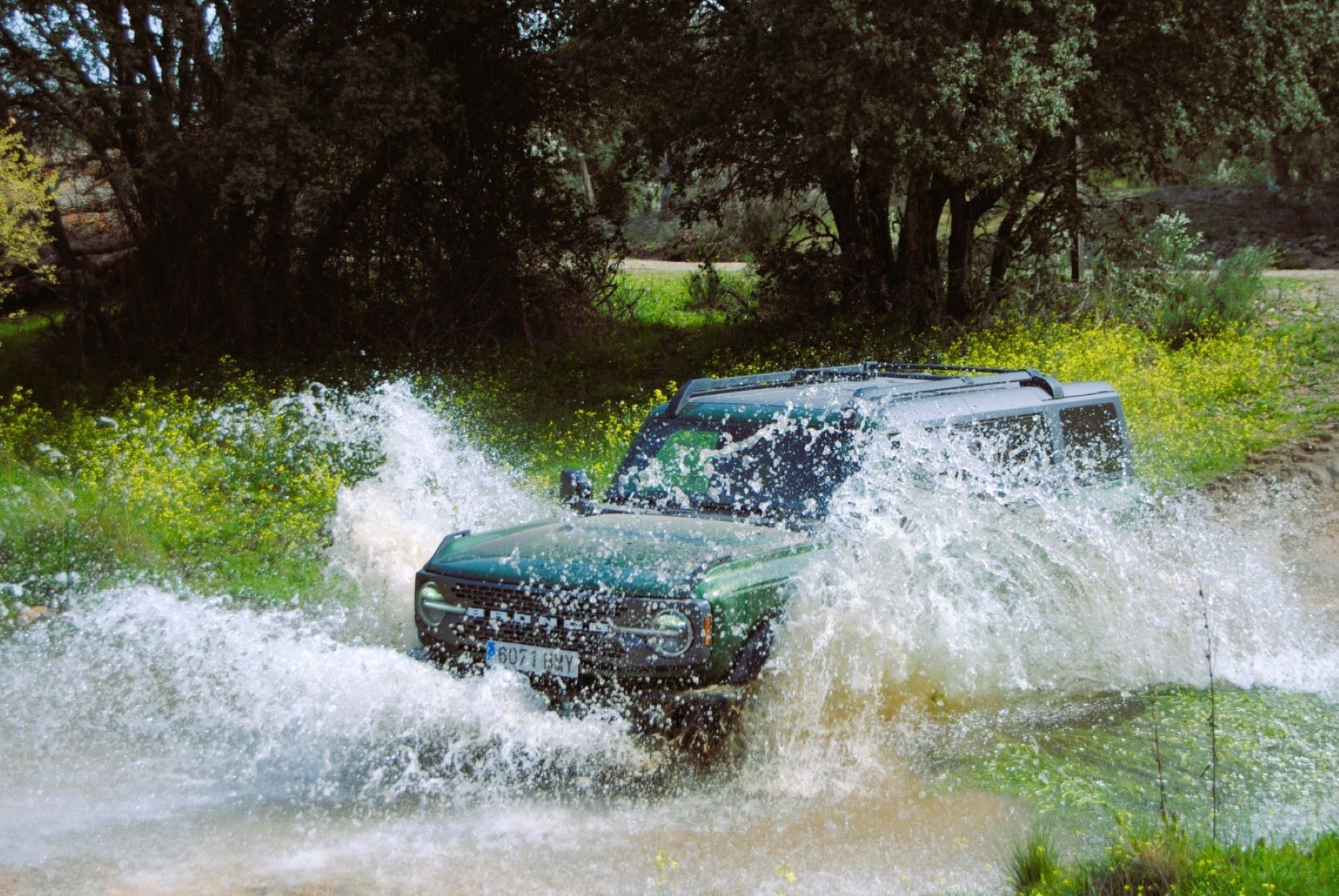 El Badlands (ya lo dice su nombre en inglés, tierras malas) está especialmente adaptado al uso fuera de carretera. Sus neumáticos y sus sistemas electrónicos convierten a este Bronco en una máquina altamente efectiva en la práctica del todoterreno, al menos dentro de los coches de serie.
