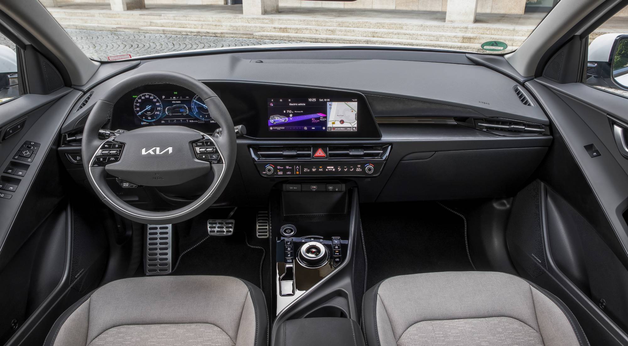 Por dentro, los cambios no son menores. El salpicadero, de aspecto muy tecnológico, se asemeja al del futurista EV6 y hereda asimismo algunos detalles del Sportage, como la barra inferior táctil multimando. También destacan el volante de dos brazos y una doble pantalla integrada donde se reflejan todos los datos de la instrumentación y el sistema multimedia.
