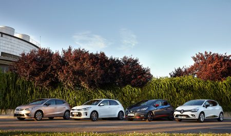 Kia Rio, Nissan Micra, Renault Clio y Seat Ibiza: carrocerías de cinco puertas y motores turbo de gasolina y tres cilindros.