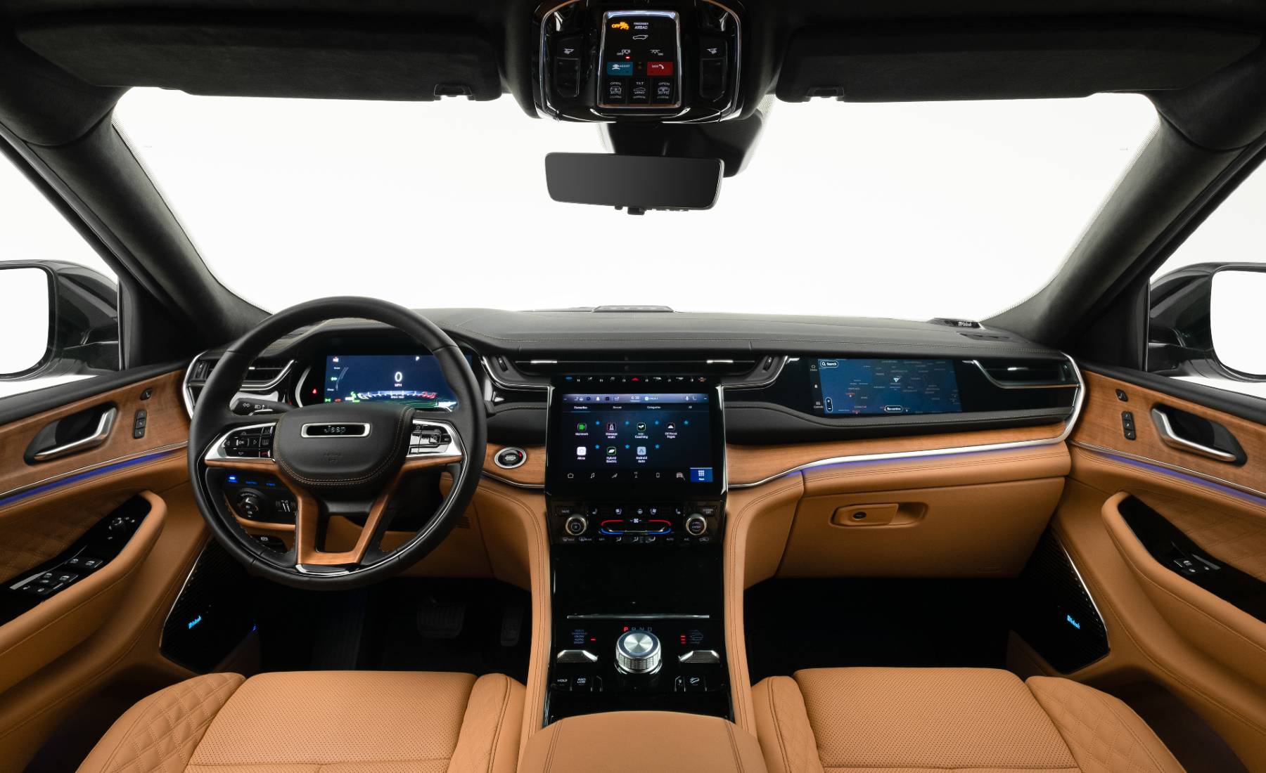 El espacioso interior, por su parte, está rematado con materiales naturales trabajados a mano. Además, dispone de un mayor espacio para las piernas en las plazas traseras comparado con su antecesor. Por otra parte, se ha renovado tecnológicamente, siendo el Jeep más avanzado de la historia en esta área. Entre las características disponibles, incluye: