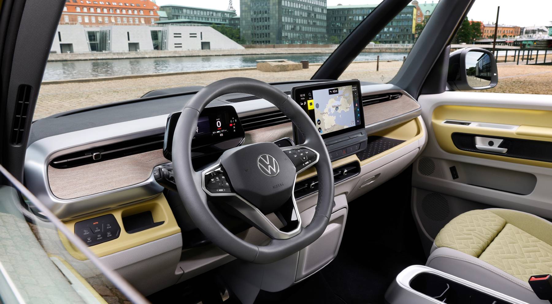 Tanto los programas como el sistema operativo del ID.Buzz se mantienen al día con las actualizaciones remotas. Además, es posible utilizar los servicios de Apple Music y Spotify a través del sistema de infoentretenimiento, incluso sin un teléfono emparejado.