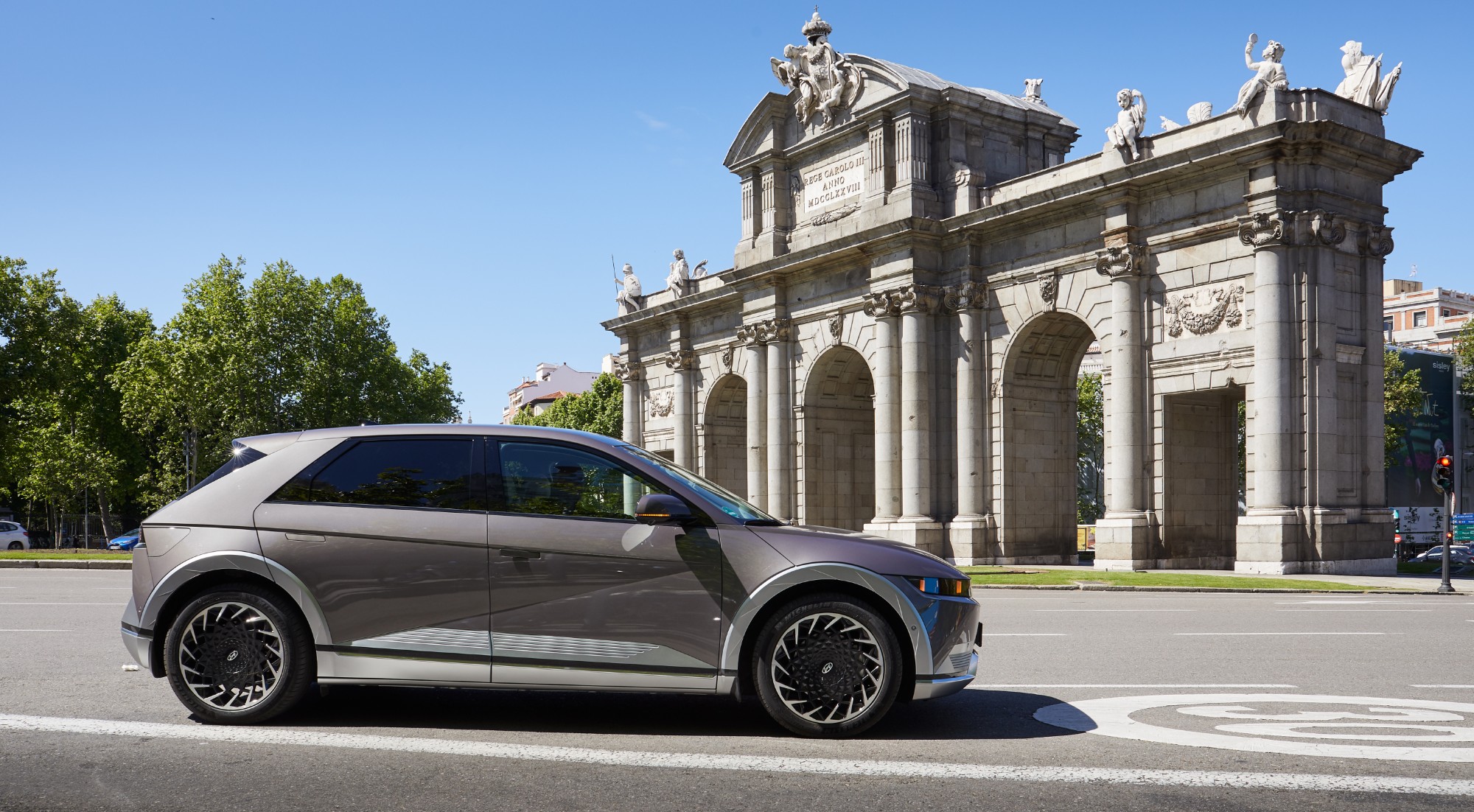 El Ioniq 5, durante la prueba de conducción en Madrid. / Enrique Brooking