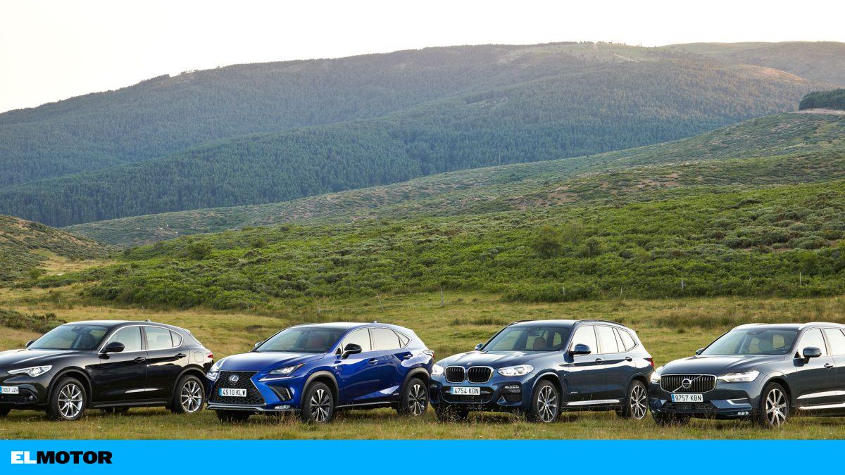 El Lexus y el Volvo son más cómodos para viajar, el NX porque tiene una suspensión suave que absorbe bien y el sueco porque ofrece una calidad de rodadura excelente y filtra todo sin inmutarse. El BMW está en un punto medio, con una suspensión y tacto algo más duros. Y el Alfa es el más deportivo y su suspensión de recorridos más cortos es algo seca en los baches. En la sonoridad el Lexus resulta muy agradable y silencioso en ciudad, pero en carretera hace ruido si se le exige. El XC60 y el X3 están muy aislados, y en el Stelvio se oye más el motor al acelerar.