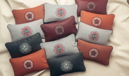 Se necesitaron tres días enteros para alcanzar los exigentes estándares de calidad de Bentley, con casi 30.000 puntadas en cada emblema. Este se compone de dos colores de hilo distintos, y se utilizaron tres combinaciones de colores diferentes del emblema para contrastar con las pieles seleccionadas individualmente para los distintos colores de cojines, a juego con los interiores de los Bentley que los llevarán.