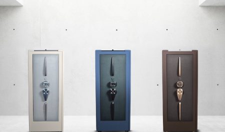 La caja fuerte de Bugatti pesa 215 kilos y está coronada por un sofisticado reloj de tourbillon. Y solo puede abrirse por un sistema de sensor biométrico que reconoce la huella digital del propietario o mediante un chip de seguridad.