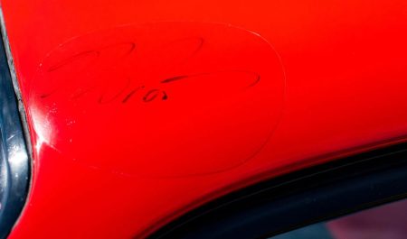 Firma de Alain Prost sobre la carrocería del Ferrari F40 que recibió de la marca. | RM Sotheby's