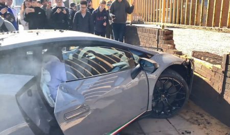 Tras recorrer unos primeros metros con normalidad entre otros coches estacionados en la calle y numerosos curiosos, el Huracan realizó un cambio brusco de dirección e invadió la acera colisionando contra una pared frontalmente y contra un árbol lateralmente.