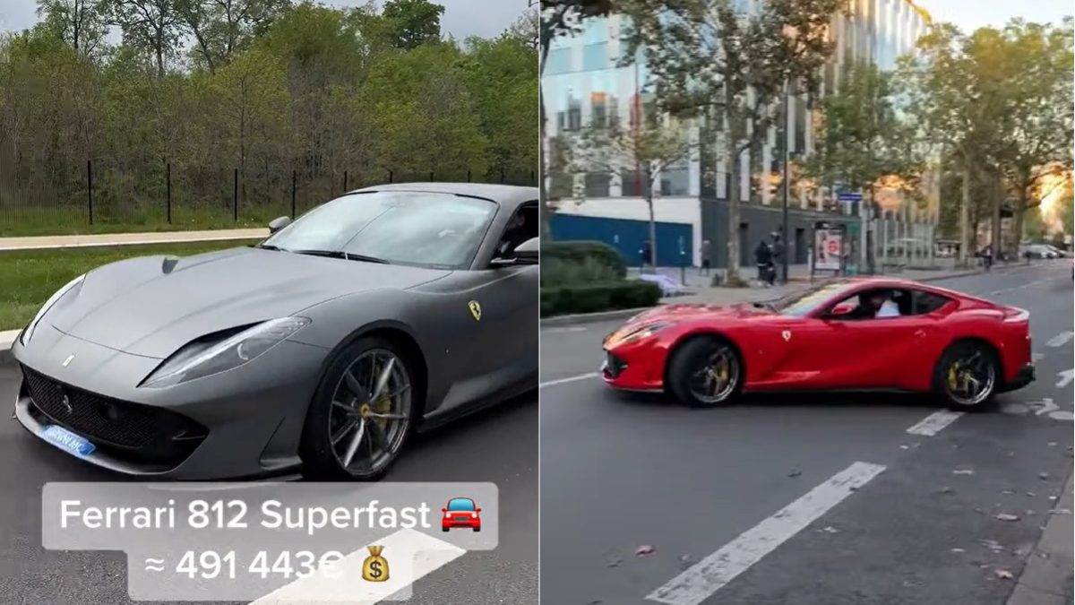 En el vídeo anterior se ve al portero con un Ferrari 812 GTS gris, pero también hay imágenes suyas en otro modelo de la marca del cavallino rampante, en este caso de color rojo: un Ferrari 812 Superfast.