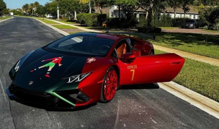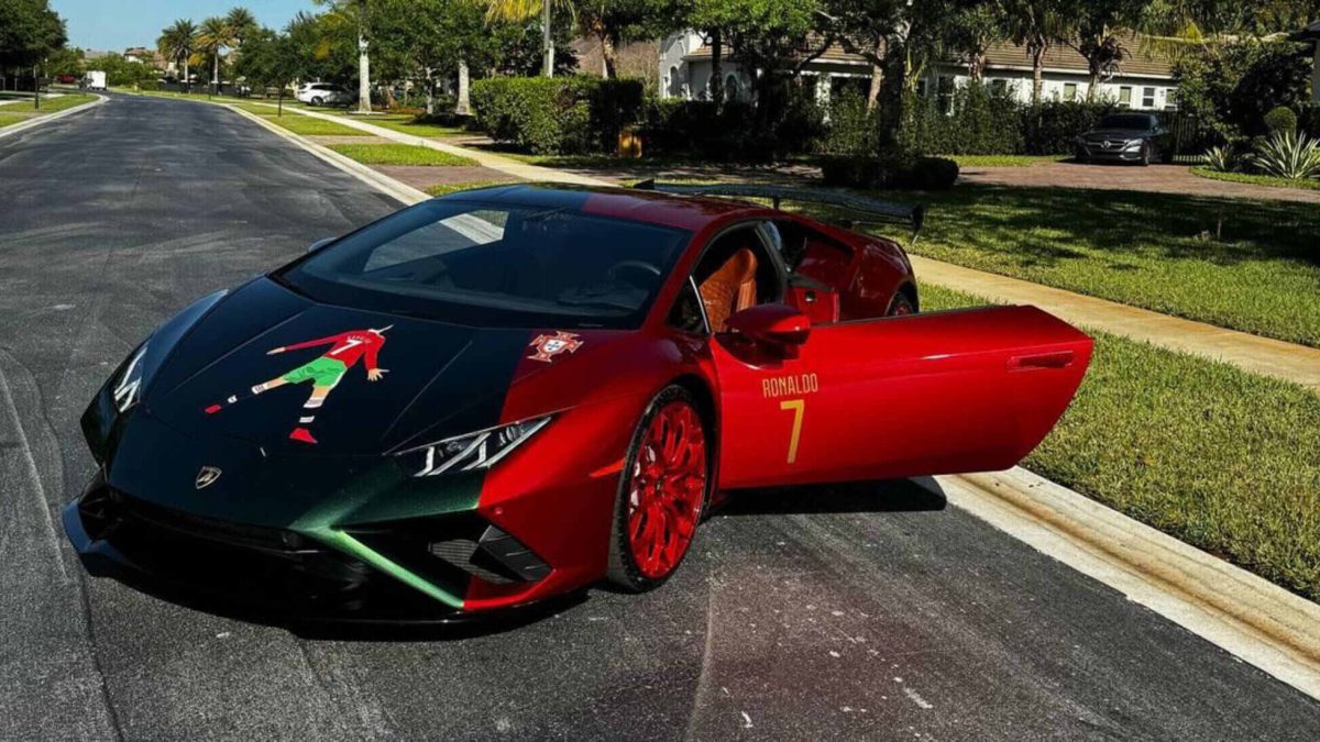 La customización de este no pasa desapercibida porque gira en torno a Cristiano Ronaldo. La carrocería del deportivo italiano es bicolor: verde y rojo, como la bandera de Portugal. El primero de ellos está presente en el lado derecho del coche, incluyendo las llantas de esta parte, una parte del capó, la mitad del techo y el alerón trasero. El resto está teñido del segundo tono.