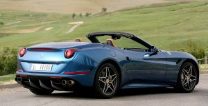 El California moderno también es un descapotable, pero tiene techo metálico plegable para poder utilizarlo todo el año; su interior incluye dos pequeñas plazas atrás, que sirven para niños y en caso de apuro, y el maletero ofrece una capacidad que permite transportar una buena cantidad de equipaje. Además, la suspensión, que es electrónica, se puede ajustar: más blanda para el uso diario y los viajes, o más dura para una conducción deportiva.