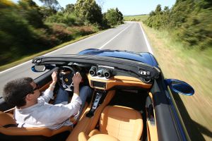 Los frenos cerámicos, con pastillas de mayor fricción, paran las 1,7 toneladas con mayor contundencia, y la sonrisa del conductor sigue creciendo. Al subir el ritmo, la vegetación de los laterales se convierte en una mancha difusa, y hay que sujetar el volante con cierta fuerza para que los baches no descoloquen el coche, que a pesar de todo se muestra obediente. Mantiene el aplomo al frenar, al entrar en la curva y al salir acelerando, sin reacciones nerviosas. Y el buen reparto del peso (47% delante, 53% detrás) pone la guinda, porque ayuda a inscribir el coche y refuerza la agilidad.