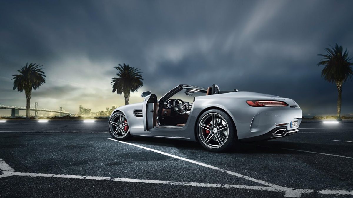 El GT C Roadster, por su parte, cuenta con el mismo bloque 4.0 V8 biturbo, pero afinado para entregar 554 CV de potencia y 680 Nm de par. La transmisión es la misma, pero con un ajuste específico, el diferencial autoblocante es electrónico y la suspensión es AMG Ride Control. También los frenos son algo mayores, con 390 mm de diámetro.