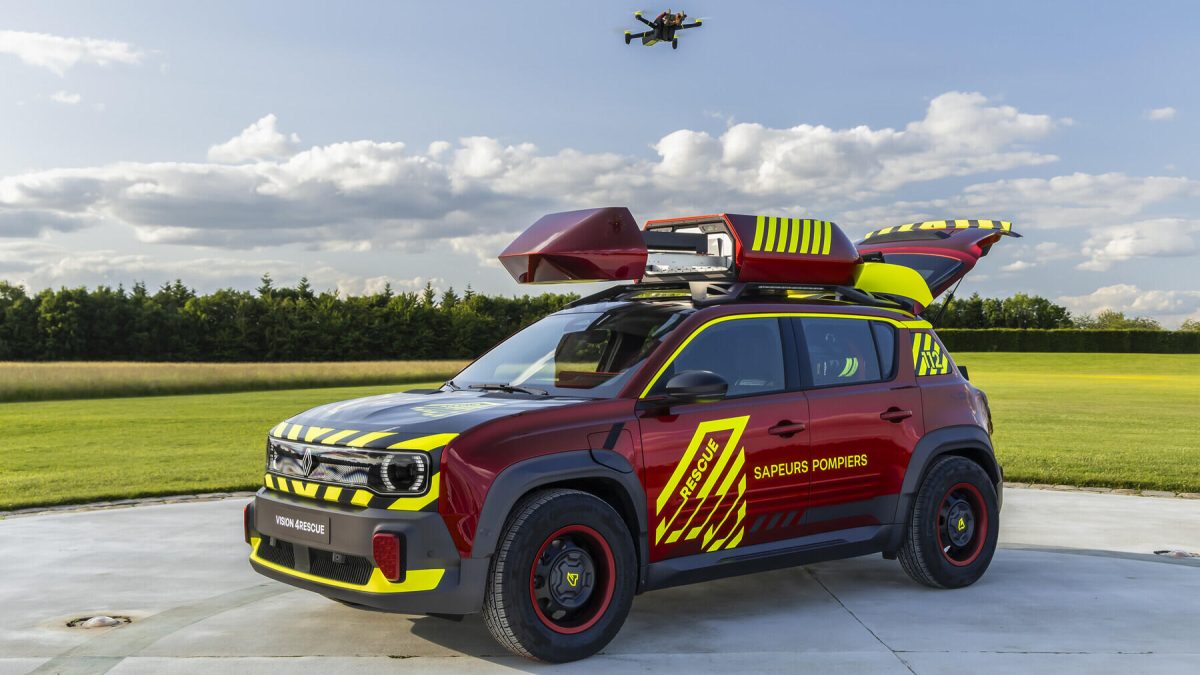 Los vehículos de emergencia no suelen ser muy emocionantes, pero Renault ha presentado el nuevo prototipo (totalmente operativo) Vision 4Rescue. Está basado en el Renault 4 E-Tech e incorpora un dron que se despliega desde un compartimento de almacenamiento en el techo.