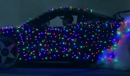 El camarógrafo y editor @koninprojekts ha publicado en su cuenta de Instagram un vídeo donde se pueden apreciar las cientos de luces de colores que rodean el vehículo. Junto con una música navideña, Alex pone a prueba el vehículo realizando derrapes entre grandes nubes de humo.
