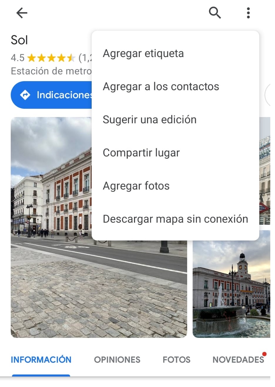 - Buscar el sitio (ejemplo: Tarragona) y presionar en la parte inferior ‘Más’.