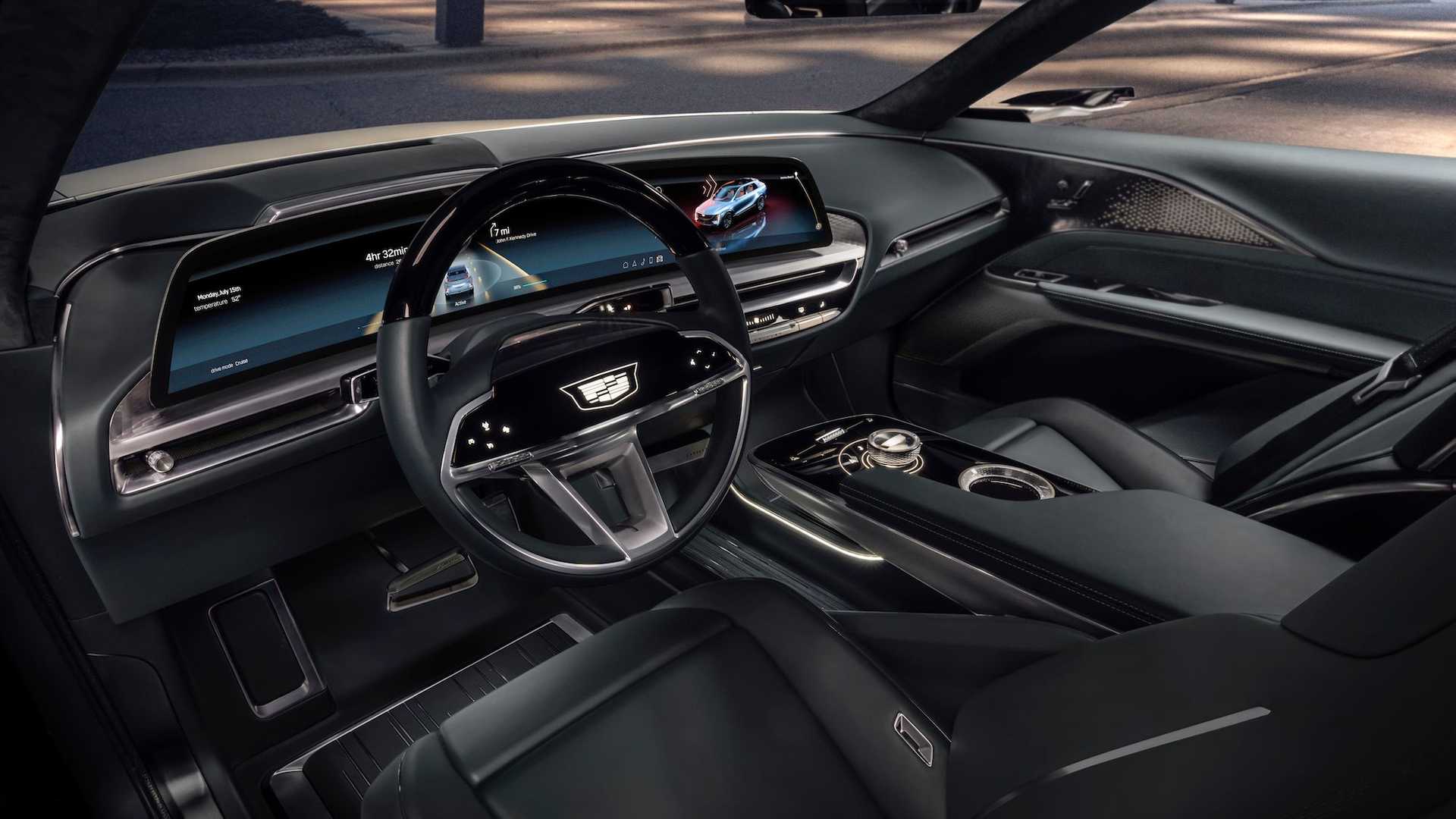 De un modo similar, la pantalla en 3D ligeramente curvada del Lyric, prototipo que adelanta cómo serán los SUV de la marca estadounidense, recorre casi todo el frontal del interior del coche. Son 33 pulgadas con un enorme espacio central para la instrumentación.