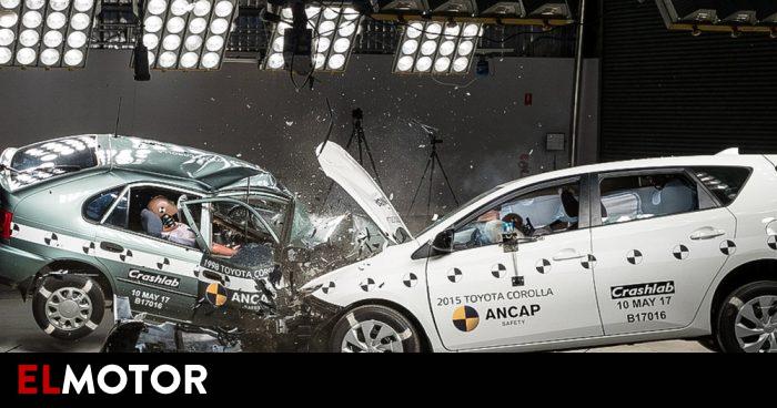 Así de estremecedor es un choque entre un Corolla de 1998 y uno de 2015