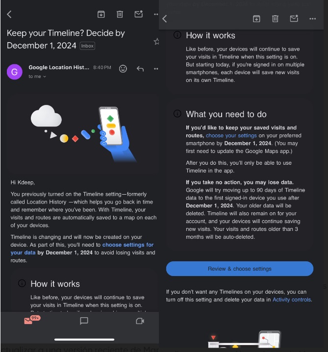 “Para conservar el acceso a los datos de su antigua línea de tiempo y garantizar que la recopilación posterior esté localizada, deberá actualizar a una versión reciente de Maps y seguir las instrucciones en una notificación automática, una alerta en la aplicación o un correo electrónico que reciba”, recomienda Android Police. Ahora bien, si la preocupación por la privacidad es prioridad, otra opción es desactivar la Cronología.