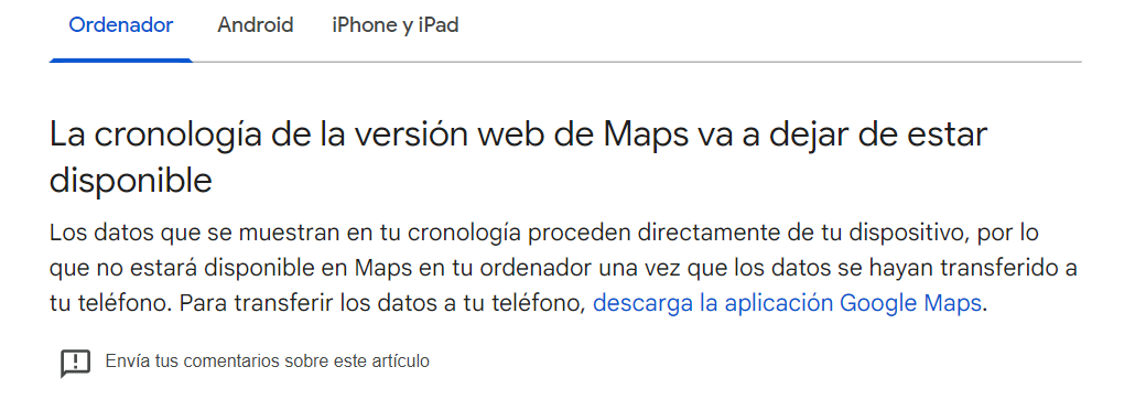 De hecho, Google ya lo ha publicado en su Centro de asistencia y advierte lo siguiente: “Importante: estos cambios se irán lanzando gradualmente para todos los usuarios de la aplicación Google Maps. Recibirás una notificación cuando haya una actualización disponible para tu cuenta”. Además, añade que la cronología desaparecerá de la web.