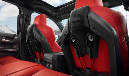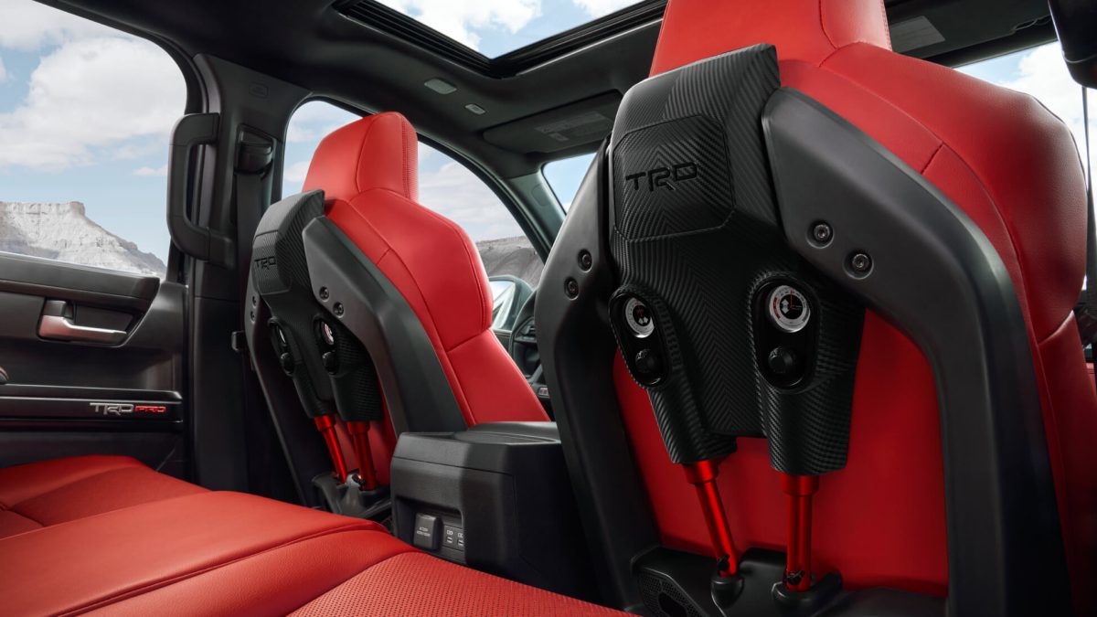 Este equipamiento hace más cómoda la conducción todoterreno, pero, al mismo tiempo, supone un problema de peso y espacio para la Tacoma. Para solucionar ese extra de kilos, Toyota ha elaborado partes del asiento con fibra de vidrio.