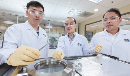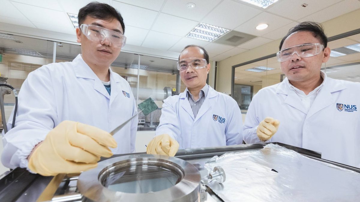 Un equipo dirigido por los científicos Xue Jun Min, Wang Xiaopeng y Vincent Lee Wee Siang lleva a cabo sus investigaciones en el Departamento de Ciencia e Ingeniería de los Materiales de la Facultad de Diseño e Ingeniería de la NUS. Habitualmente, las instalaciones permanecen iluminadas las 24 horas del día, pero una noche de 2019 el laboratorio sufrió un apagón provocado por un corte accidental del suministro eléctrico.