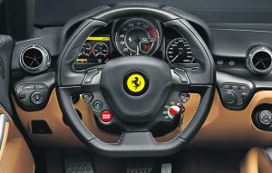El primer aviso de lo que se avecina cuando te sientas al volante de un F12 llega al pulsar el botón rojo de arranque, situado en el radio izquierdo del volante: el V12 responde al instante con un rugido bronco y fiero que pone la carne de gallina. Y al tirar de la leva del cambio para poner primera y acelerar lo confirma. Las sensaciones son difíciles de explicar. Lo primero que aparece es una especie de hormigueo que sube por el estómago y recorre todo el cuerpo. Pero enseguida se transforma, al principio en sorpresa, luego en emoción y después en una euforia irreprimible: parece que vas subido en un cohete. El F12 va pasando las marchas en un suspiro y sin casi transición: los cambios se notan más porque la cabeza oscila de delante atrás cuando corta la inyección que por lo que tarda en subir de marcha. Así, en 3,1 segundos ya va a 100 km/h, y en 8,5 vuela a 200 km/h. No hay recta suficiente en el circuito, pero llegaría a 300 km/h en apenas 21 segundos. Y para alcanzar la velocidad máxima, 340 km/h, haría falta la pista de despegue de un aeropuerto.