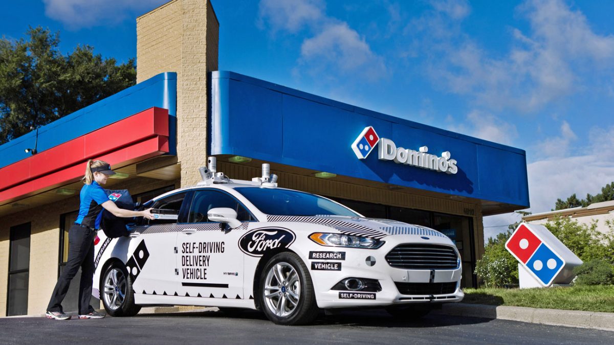 Entre las muchas aplicaciones posibles para el coche autónomo, Ford está investigando una nueva: entregar pizzas a domicilio. Ocurre en la ciudad estadounidense de Ann Arbor, cerca de Detroit (donde la marca tiene su sede principal), en colaboración con Domino’s Pizza.