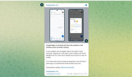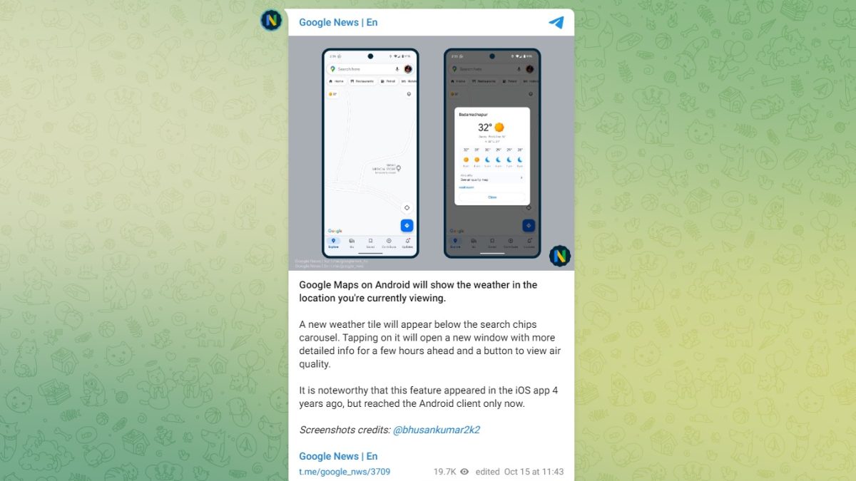Así relata el mensaje de Google News en su canal de Telegram. En resumen, una de sus nuevas funciones será mostrar el tiempo de las ubicaciones que se busquen en tiempo real.