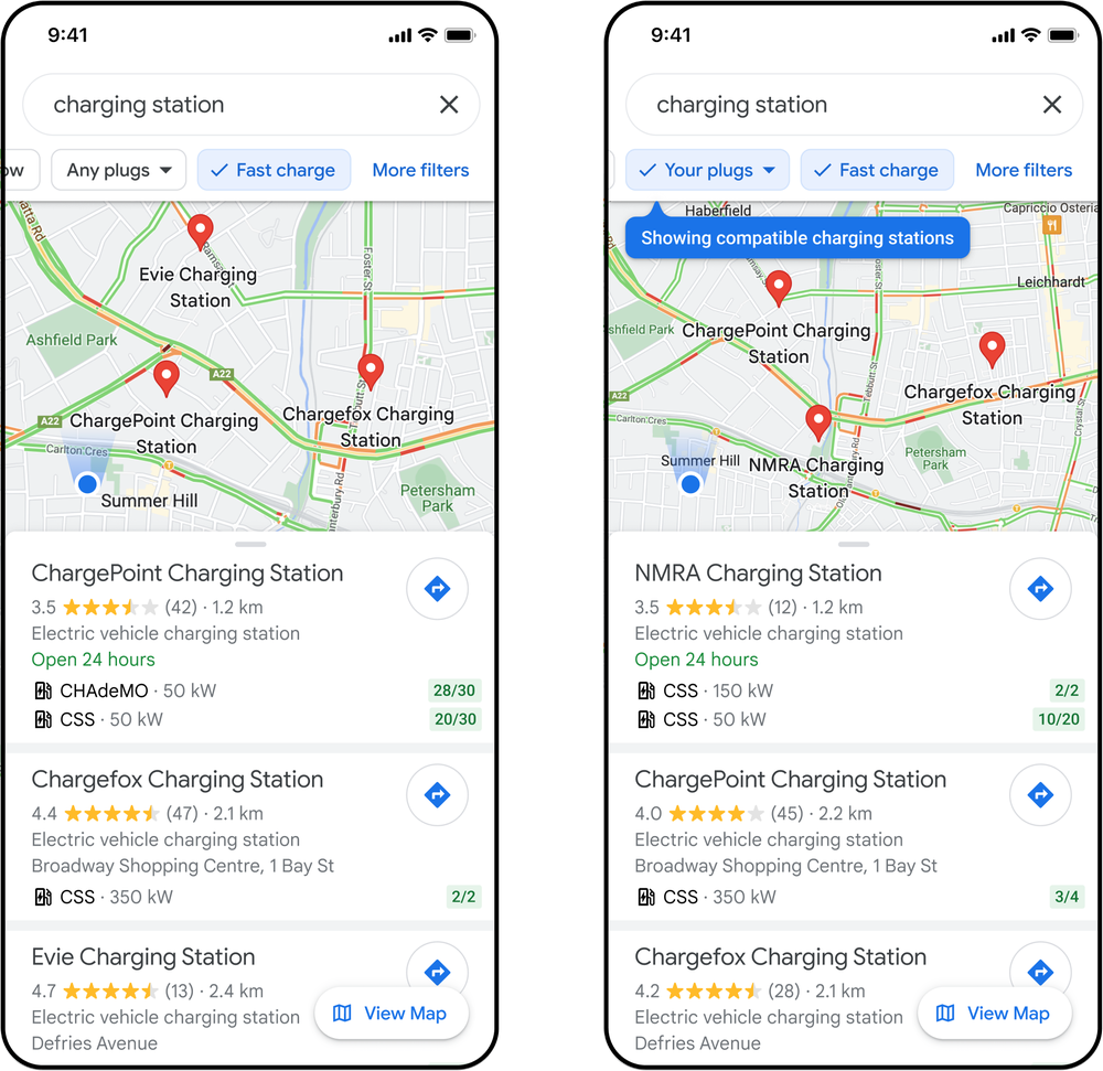 “Se verán estaciones con cargadores de 50 kW o más para que el usuario pueda cargar más rápido. También puede filtrar por estaciones que ofrecen el tipo de enchufe de su vehículo eléctrico (EV). Ambas funciones ya están para Android e iOS en países donde existen estaciones de carga para este tipo de vehículos”, detallan desde Google, aunque todavía no se informa cuándo estará disponible en España.