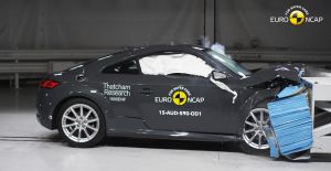 De los ocho restantes, cinco se quedan a las puertas, con cuatro estrellas: Hyundai i20 (85%), Fiat 500 X (86%), Mazda 2 (86%), Mitsubishi Space Star (90%) y Audi TT (81%; en la imagen principal, durante la colisión frontal a 64 km/h). Los cinco han superado las pruebas de impacto, demostrando una buena resistencia estructural, pero a la mayoría les falta alguno de los nuevos sistemas de seguridad electrónica, como la frenada automática de emergencia (TT, i20, Space Star), lo que les impide alcanzar el máximo galardón. Otros se ven penalizados por sus airbags y cinturones que, en la nueva prueba de choque frontal a 50 km/h, ejercen una presión excesiva sobre el tórax y pueden afectar a los ocupantes más vulnerables, como las mujeres muy delgadas y las personas de edad avanzada.