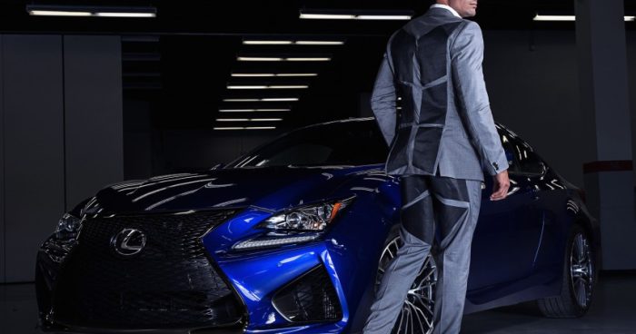 Conscientes de que puede ser algo agresivo con la indumentaria del conductor, Lexus se ha asociado con diseñadores para crear un línea de trajes específica que cuenta con velcro en toda la parte trasera, con lo que el efecto de la tecnología V-LCRO se ve potenciado.