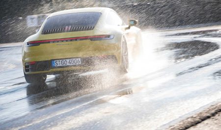 La marca afirma que el conductor nota sensiblemente el efecto del modo Porsche Wet ya que el 911 ofrece “un comportamiento más noble” y responde mejor tanto en cambios de dirección repentinos como en los de superficie con diferente tipo de agarre, y lo mismo ocurre a la hora de entregar potencia de forma inmediata.