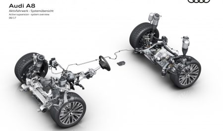 Audi está desvelando los detalles del nuevo Audi A8 con cuentagotas: sabemos que se aparcará solo y que utilizará un sistema eléctrico de 48 voltios. Pues bien, una de las ventajas de esta última característica es que se utilizará para mejorar la suspensión, que será electromecánica y activa, lo que redundará en un mayor confort y refinamiento de marcha.