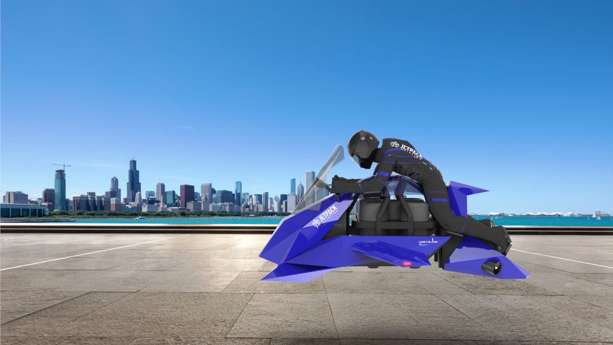 Al contrario que otros dispositivos similares, éste si conserva un diseño que, salvando las distancias, se asemeja al de una moto deportiva de carretera. La posición del piloto es relativamente similar, yendo recostado hacia adelante con los pies colocados en unos estribos en la zona trasera. Pero lo más alucinante es que es real, puede comprarse y vuela.