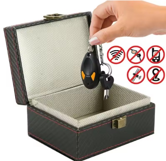 La siguiente opción es una caja de protección de señal del coche que cubre completamente la tela de protección de señal para evitar fugas de señal. Puede bloquear las señales de llave del coche, señales Bluetooth, señales WIFI, señales GPS, señales de llamada GSM, NFC y más. Más vale prevenir que curar.