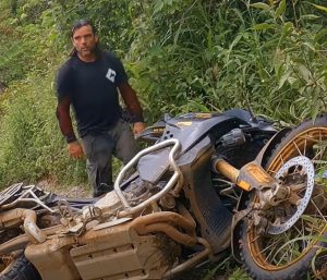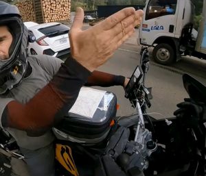 El aventurero español, que está atravesando el país centroamericano en moto, no hace caso a las advertencias y tiene problemas a bordo de su BMW GS 800.