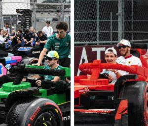 Cuando la F1 se tiñe de rosa: Verstappen, Russell, Norris y este famoso actor se suben a un Cadillac hecho de Lego en el GP de Las Vegas