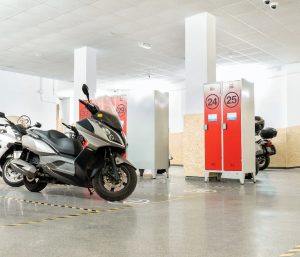MimoTo ofrece aparcamientos con vigilancia 24 horas y taquillas donde estacionar motocicletas, patinetes o bicicletas sin complicaciones.