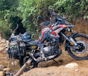 La tendinitis también está dificultando la ruta del aventurero, ya que no le permite levantar la moto cuando queda atascada en los barrizales.