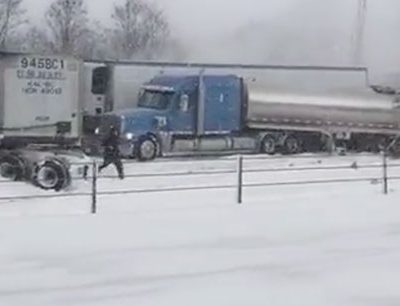 Tratar de escapar en coche de la nieve derretida no es tarea fácil y la cómica reacción de este hombre es una prueba de ello.