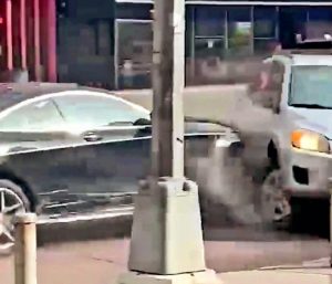 Un usuario de Twitter grabó las embestidas de un Mercedes Clase C a un Toyota RAV4 hasta que este quedó atrapado en la acera.