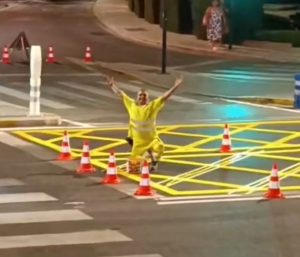 Una publicación en Instagram comparte las imágenes de un trabajador que triunfa por su forma de marcar una señal en Málaga.