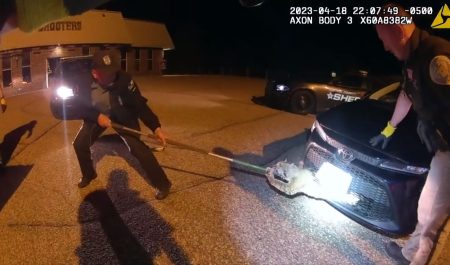 El animal se encontraba en la parte frontal del vehículo por razones desconocidas. Cuando los agentes trataron de liberarlo, el felino respondió así.