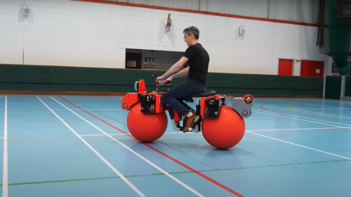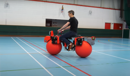 Esta bicicleta lleva unas ruedas omnidireccionales en forma de bolas de plástico gigantes que se pueden desplazar en cualquier dirección.