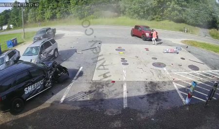 El agente de un condado de Carolina del Norte, que conducía sin luces de emergencia, perdió el control del vehículo hasta chocar contra un aparcamiento.