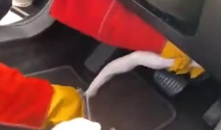 Al inspeccionar el vehículo, se percataron de que había una serpiente bajó el capó del automóvil, que fue rescatada a través de la columna del volante, tal y como se puede apreciar en las imágenes.