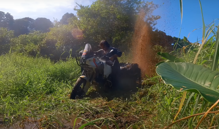 Problemas para Sinewan: su moto queda atascada en un pantano